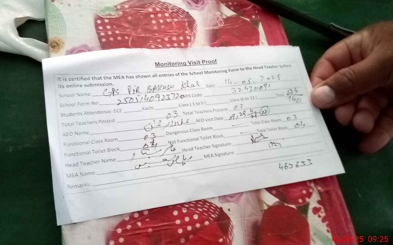 | EMIS Code: 32430091 | Name of School: GPS PIR BAKHSH KHAS | |||