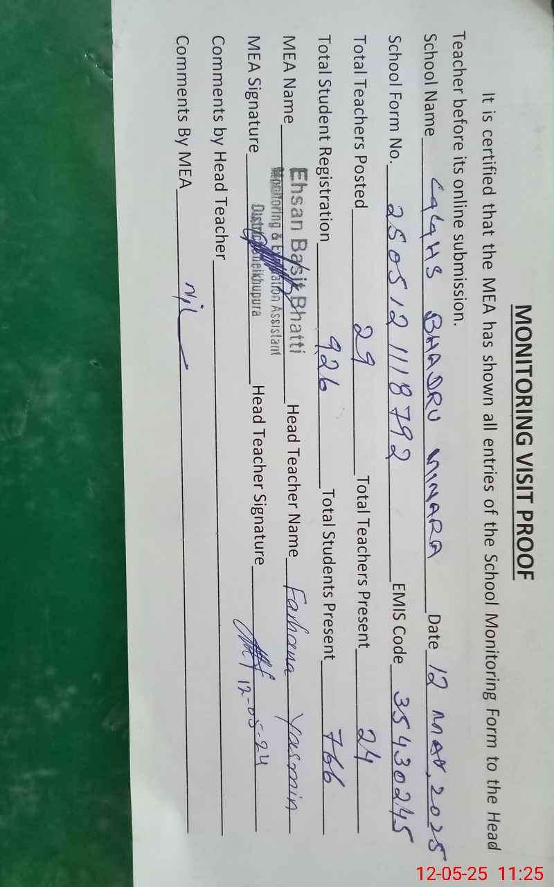 | EMIS Code: 35430245 | Name of School: GGHS BHADRU MINARA | |||