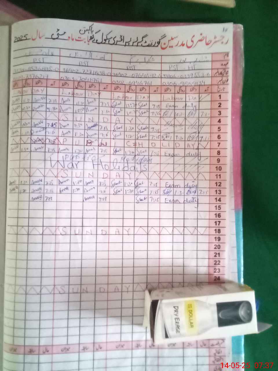 | 33**** | Sh**** No**** | PST | Regular | 0 | 0 | 0 | 0 | 0 | 0 | 0 | 0 | 0 | Exam Duty |