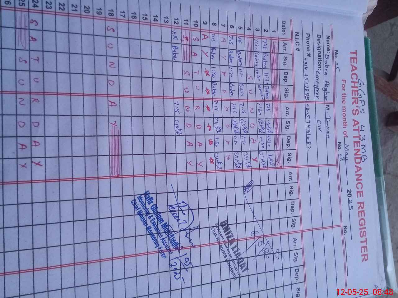 | Name: AF**** IL**** Designation: (School Headmaster's/Headmistress's) PST Phone/Cell Number: 03**** |