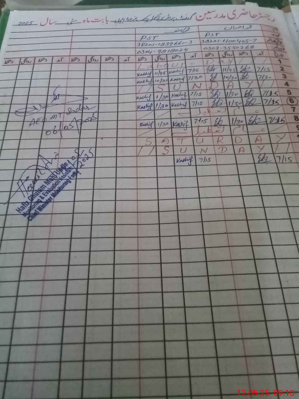 | Name: Mu**** Wa**** Designation: (School Headmaster's/Headmistress's) PST Phone/Cell Number: 03**** |