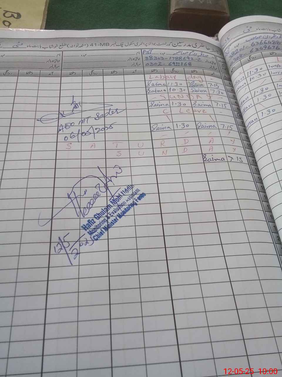 | Name: GH**** Sa**** Designation: (School Headmaster's/Headmistress's) PST/PTC/JV Phone/Cell Number: 03**** |