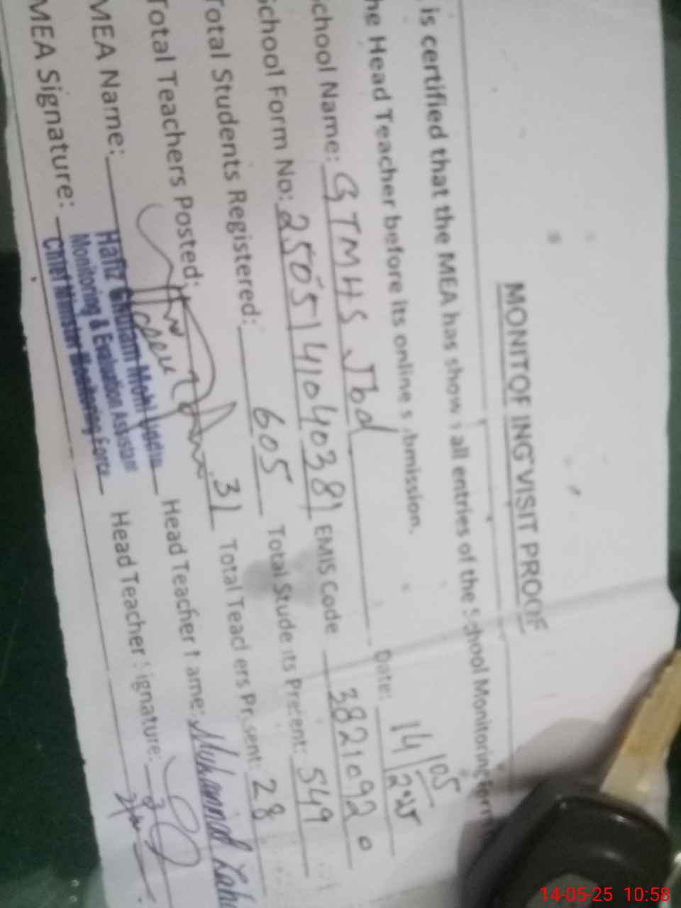 | Certified that this School was Inspected by the Undersigned MEA/DMO Today and the Information Stated Above is as Per Record. | |||||