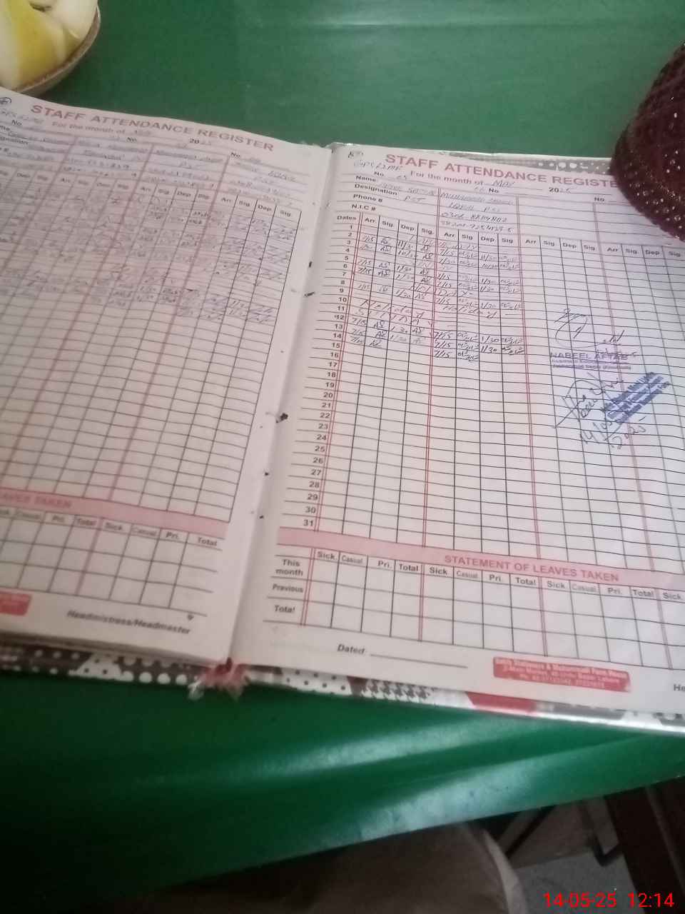 | CNIC | Full Name | Designation | R/C | Absence During Last Calender Month |