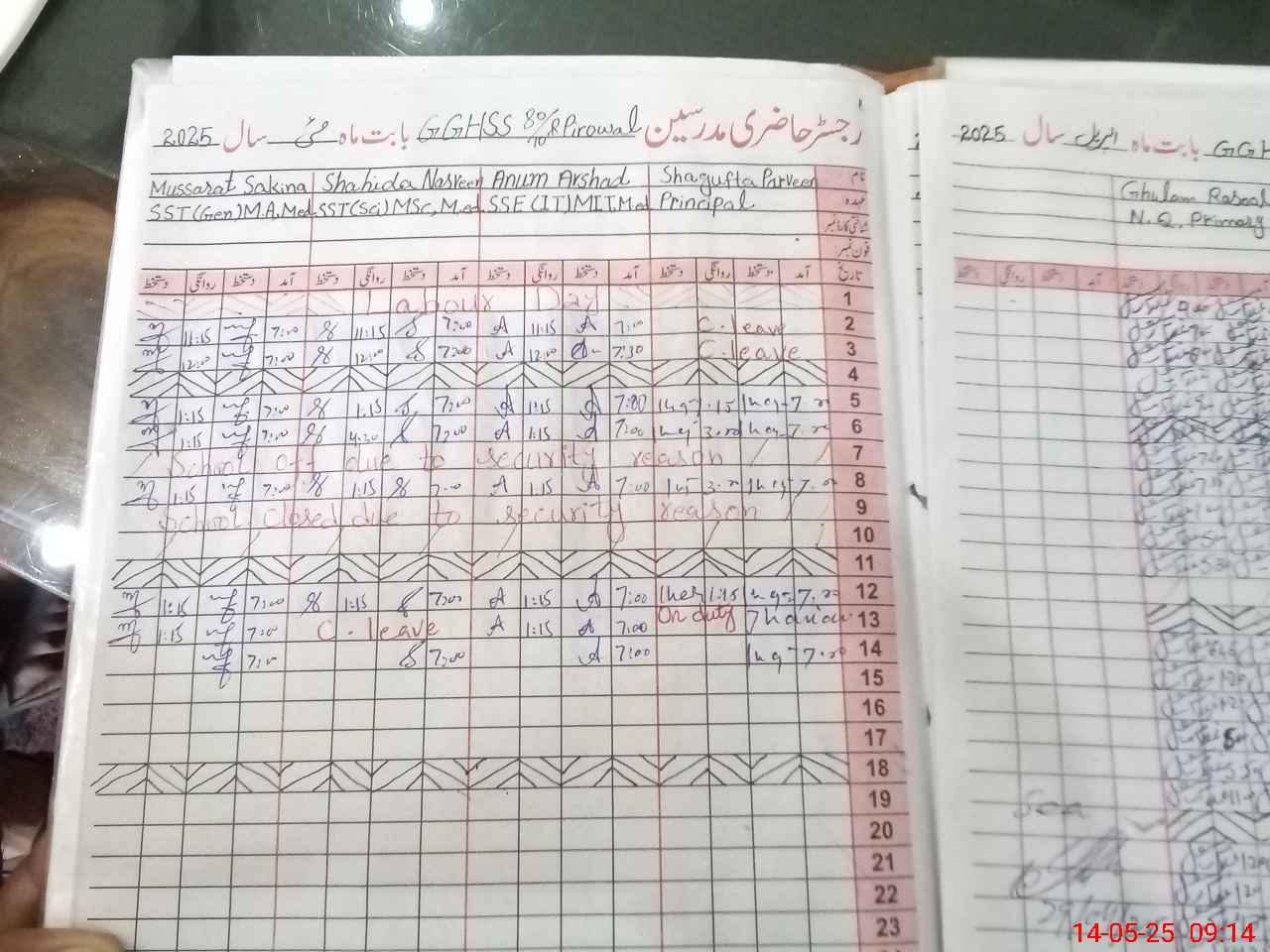 | CNIC | Full Name | Designation | R/C | Absence During Last Calender Month |