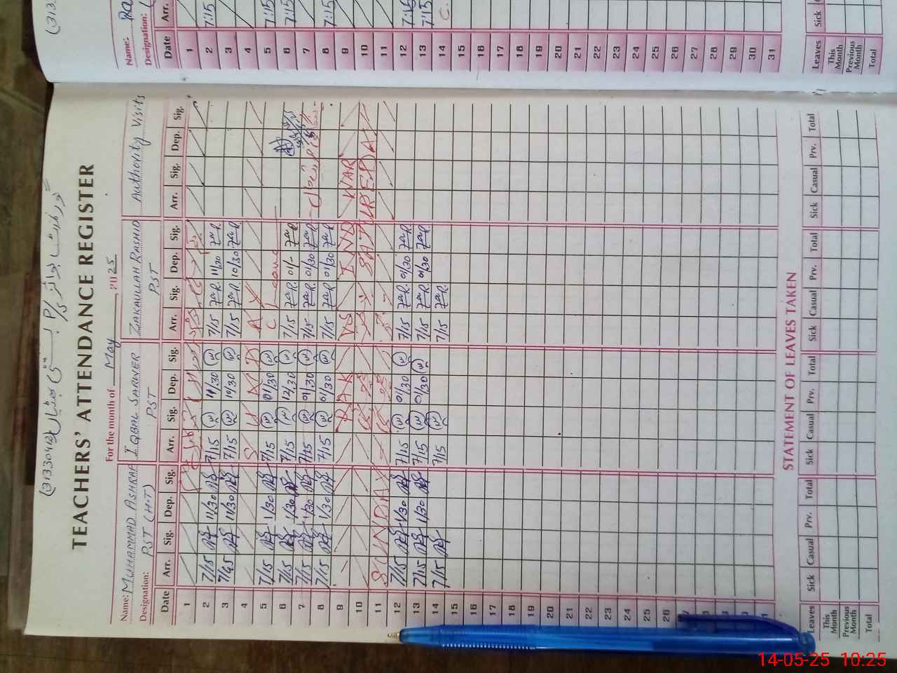 | CNIC | Full Name | Designation | R/C | Absence During Last Calender Month |