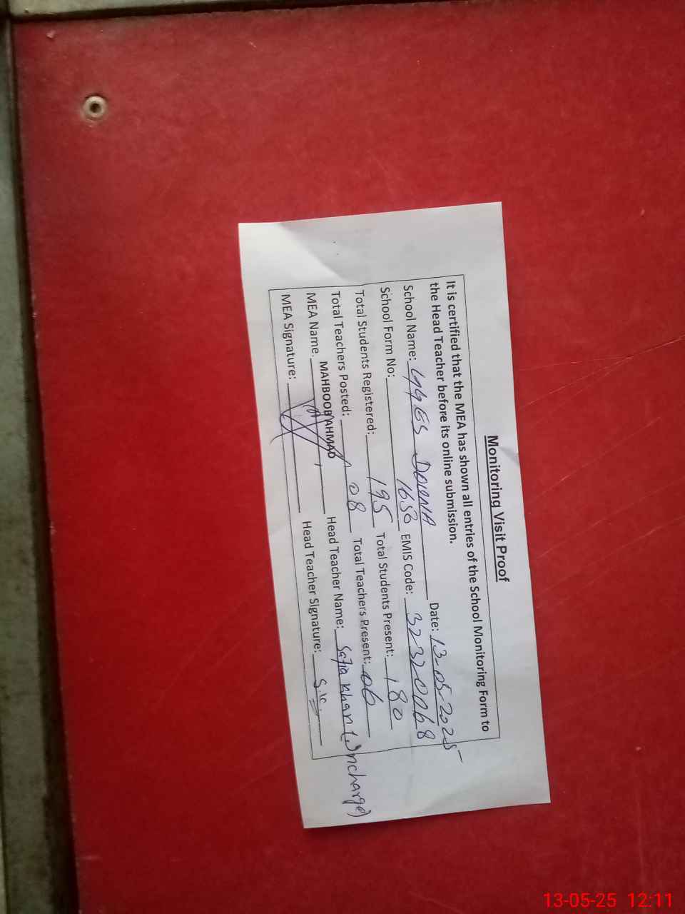 | Certified that this School was Inspected by the Undersigned MEA/DMO Today and the Information Stated Above is as Per Record. | |||||