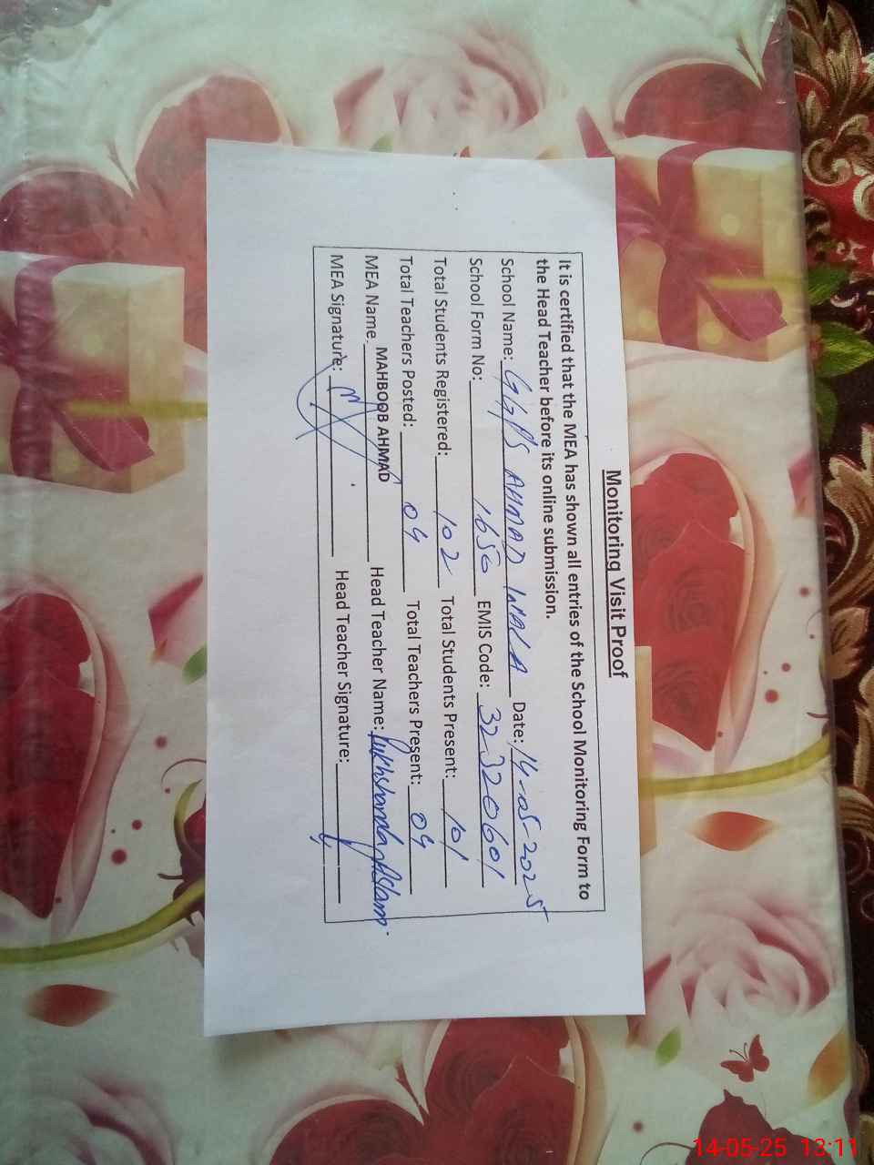 | EMIS Code: 32320601 | Name of School: GGPS AHMAD WALA | |||