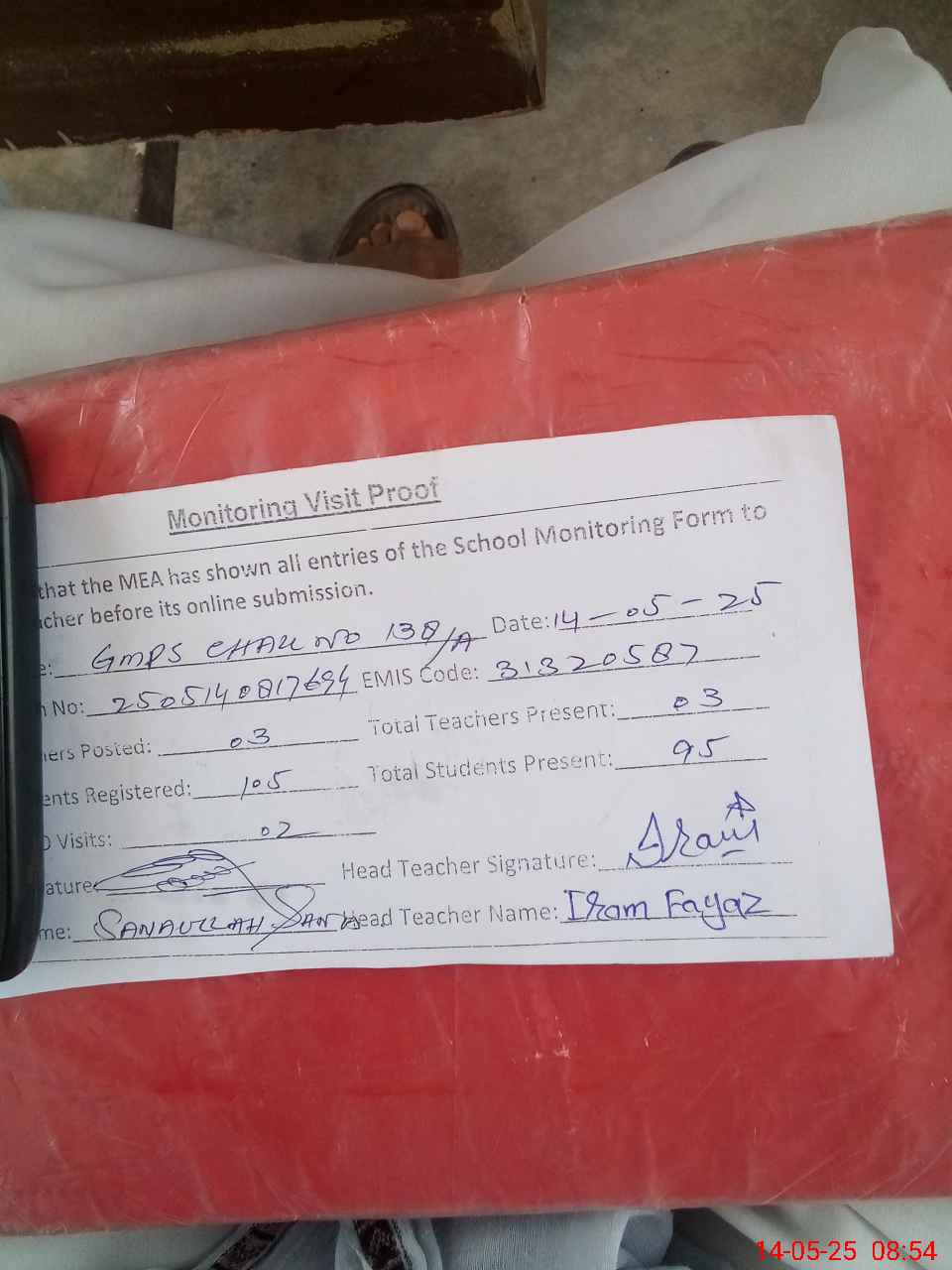 | EMIS Code: 31320587 | Name of School: GMPS CHAK NO.138/A | |||