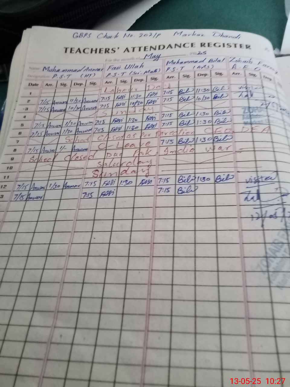 | Name: M.**** Designation: (School Headmaster's/Headmistress's) PST Phone/Cell Number: 03**** |