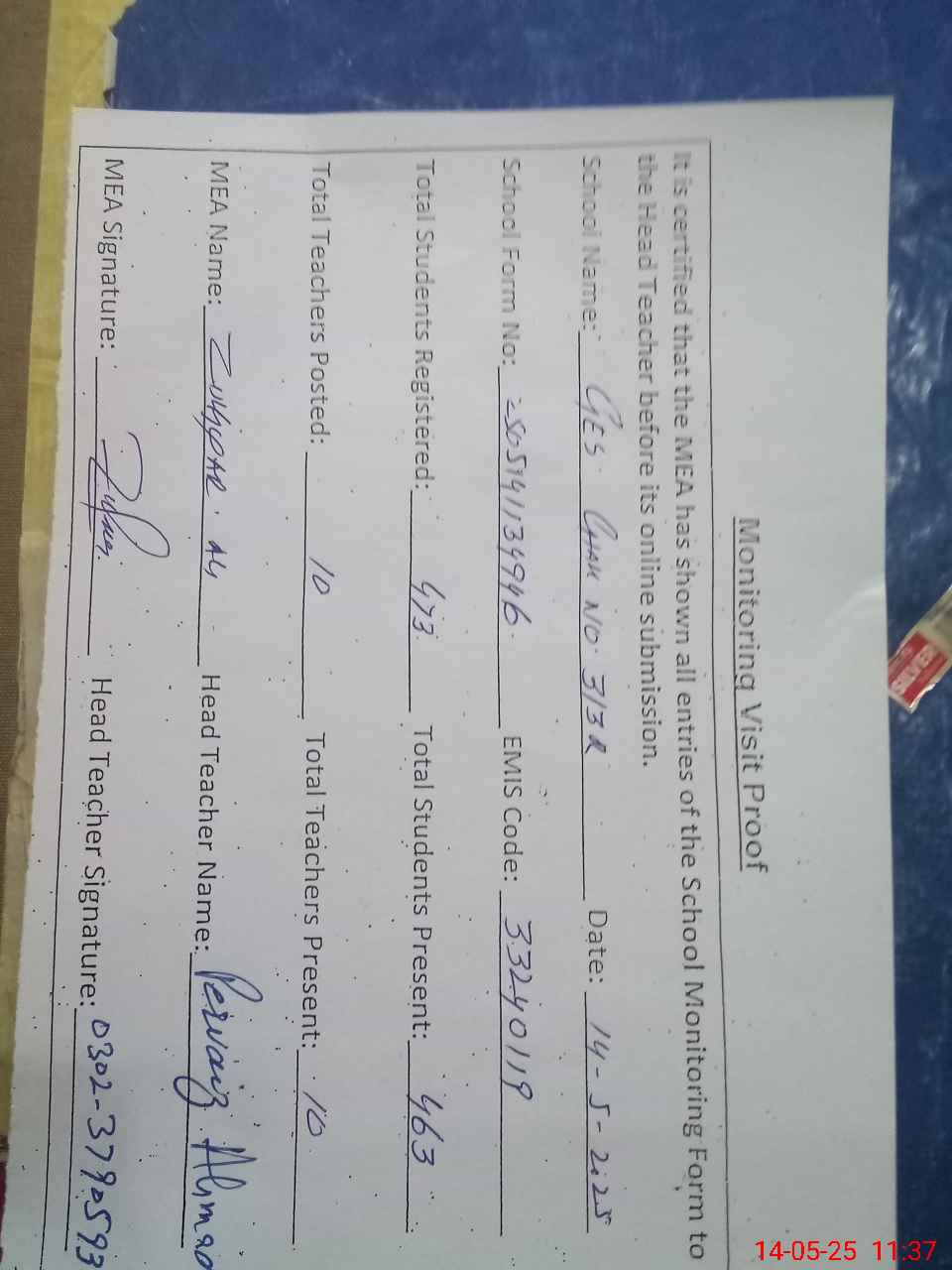 | EMIS Code: 33240119 | Name of School: GES CHAK NO. 3/3-R | |||