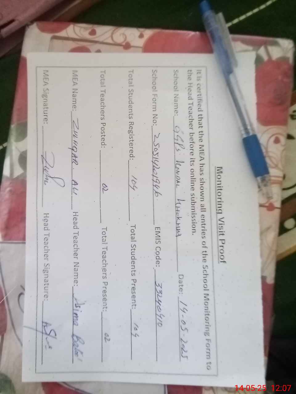 | EMIS Code: 33240410 | Name of School: GGPS KONDAL KHAOKRAN | |||