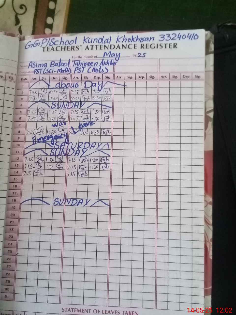 | Leave | Duty | Absent | Maternity | Medical | Ex- Pak |