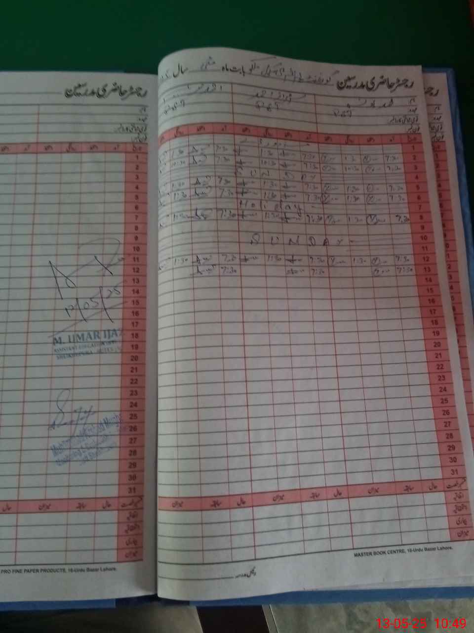 | CNIC | Full Name | Designation | R/C | Absence During Last Calender Month |