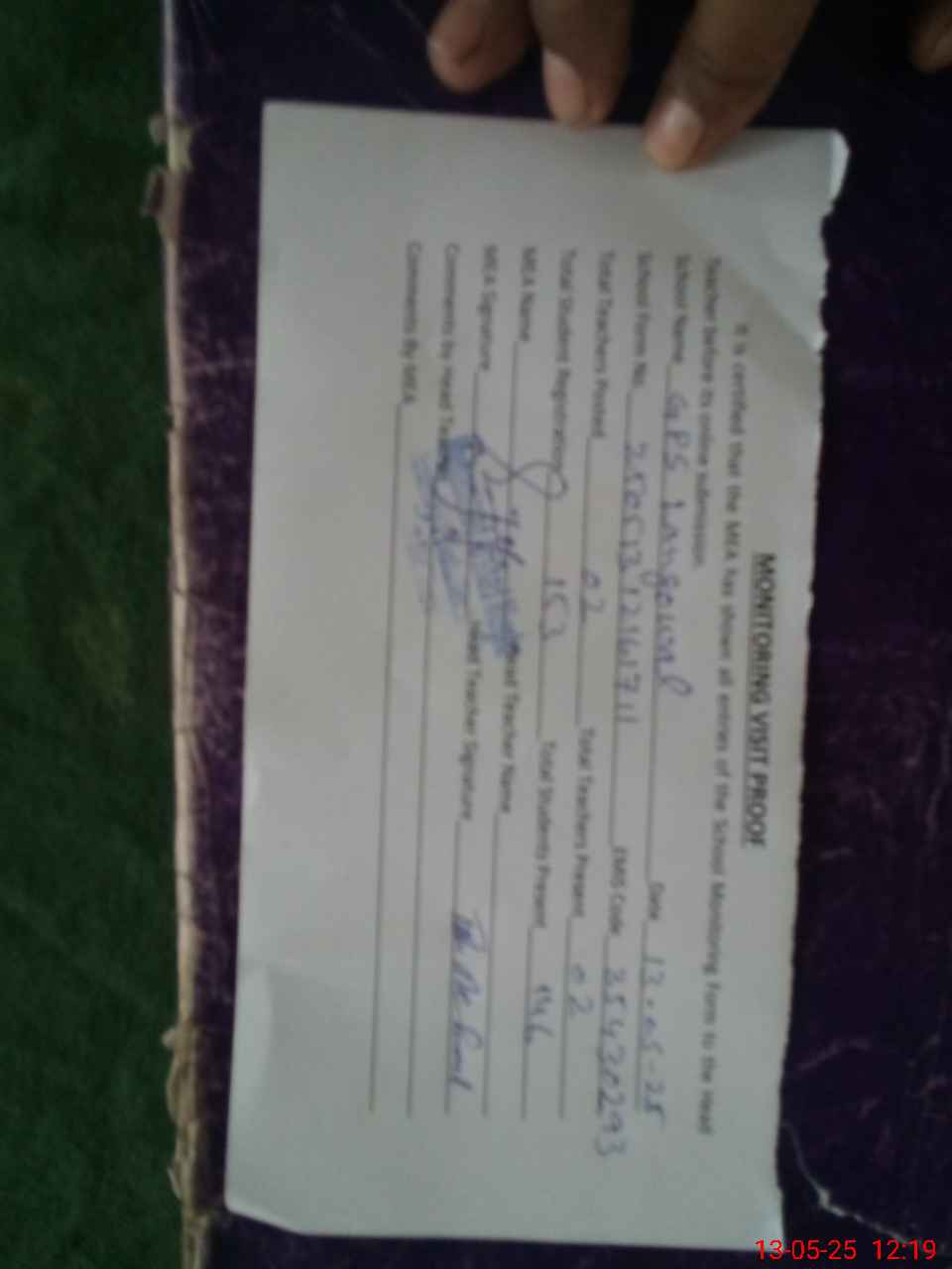 | Attendance Register | Head Teacher | MEA with School | Visit Proof |