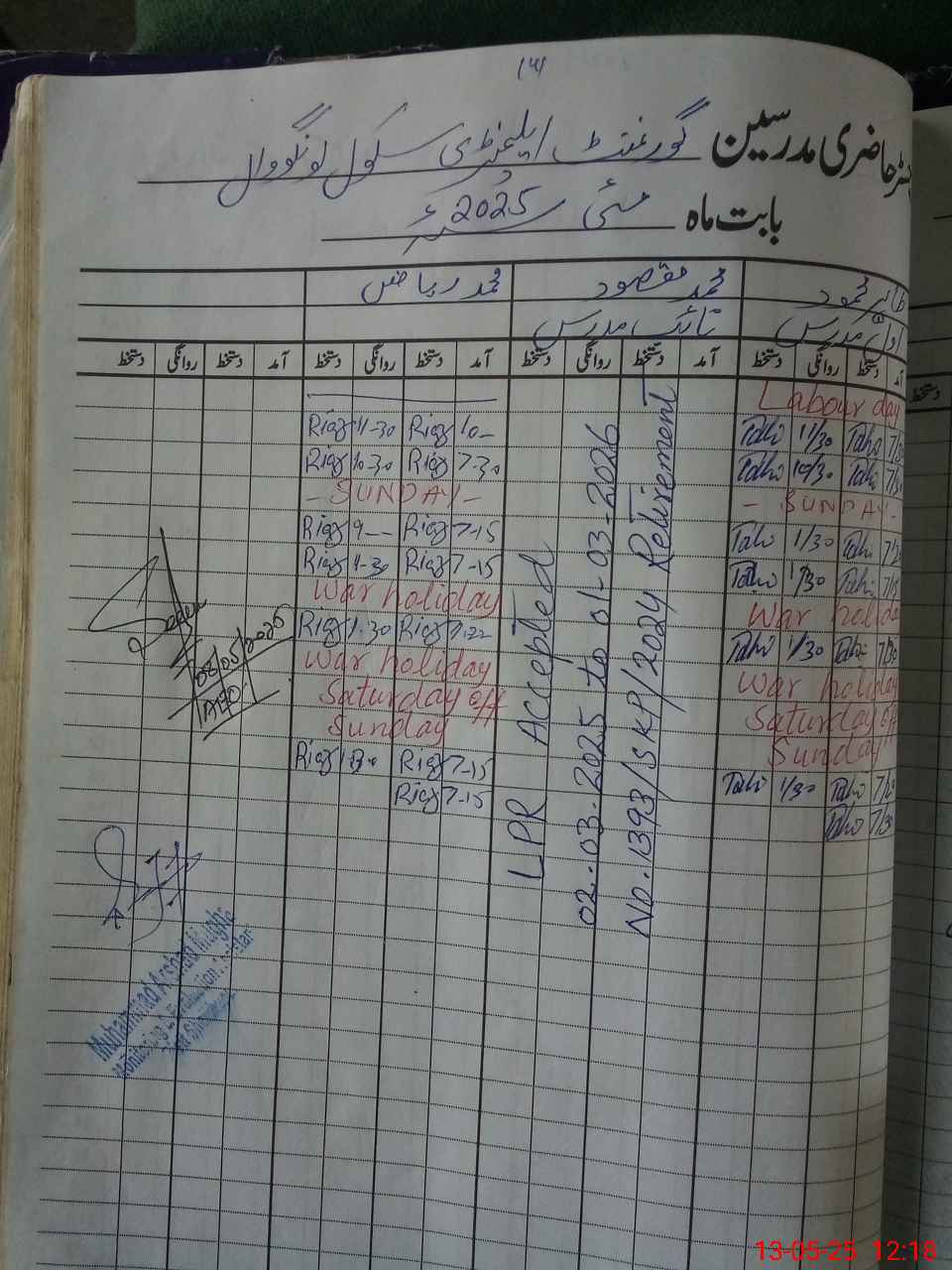 | CNIC | Full Name | Designation | R/C | Absence During Last Calender Month |