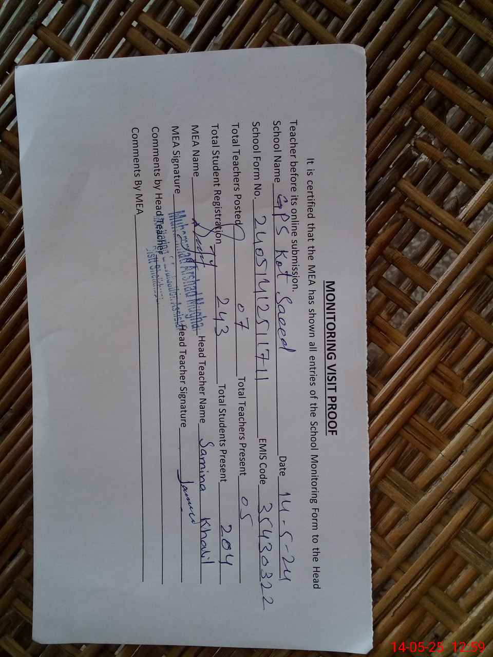 | EMIS Code: 35430322 | Name of School: GPS KOT SAEED | |||