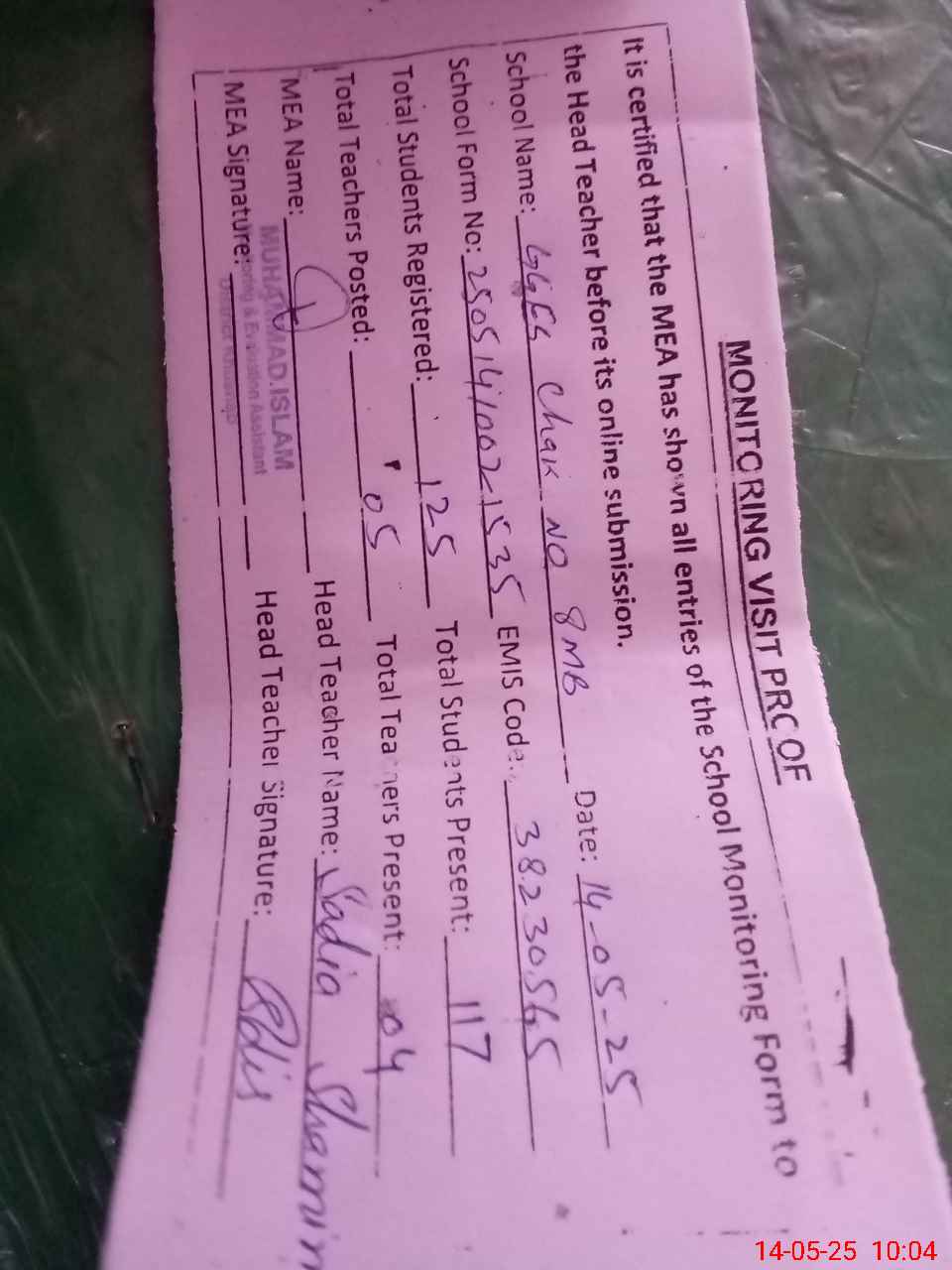 | EMIS Code: 38230565 | Name of School: GGES CHAK NO.8 MB | |||