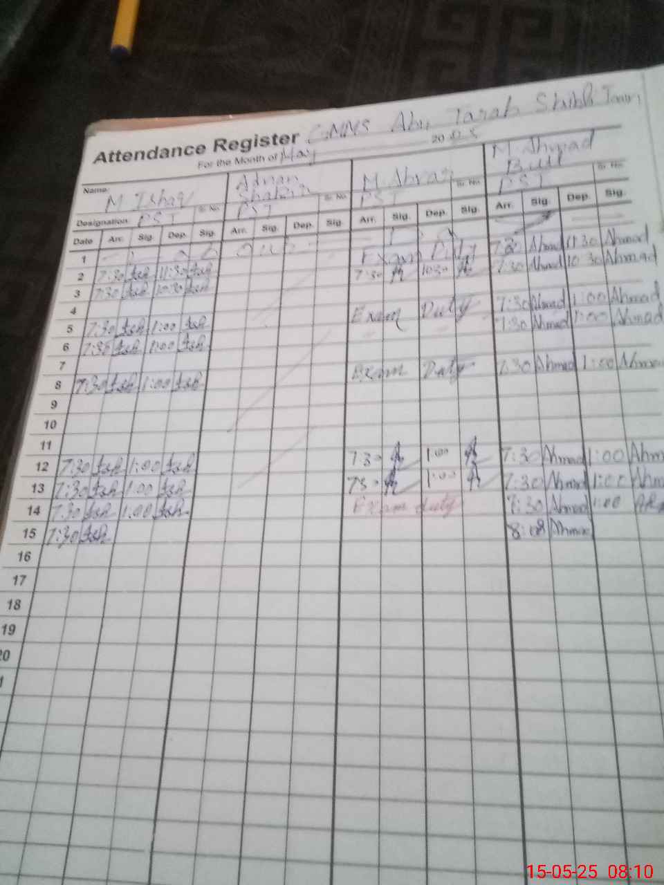 | 35**** | Mu**** Ab**** | PST | Regular | 0 | 0 | 0 | 0 | 0 | 0 | 0 | 0 | 0 | Exam Duty |