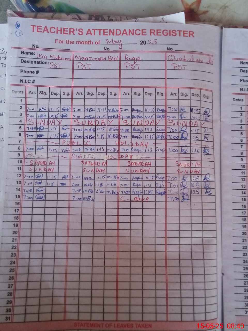 | Name: Hi**** Me**** Designation: (School Headmaster's/Headmistress's) PST Phone/Cell Number: 03**** |