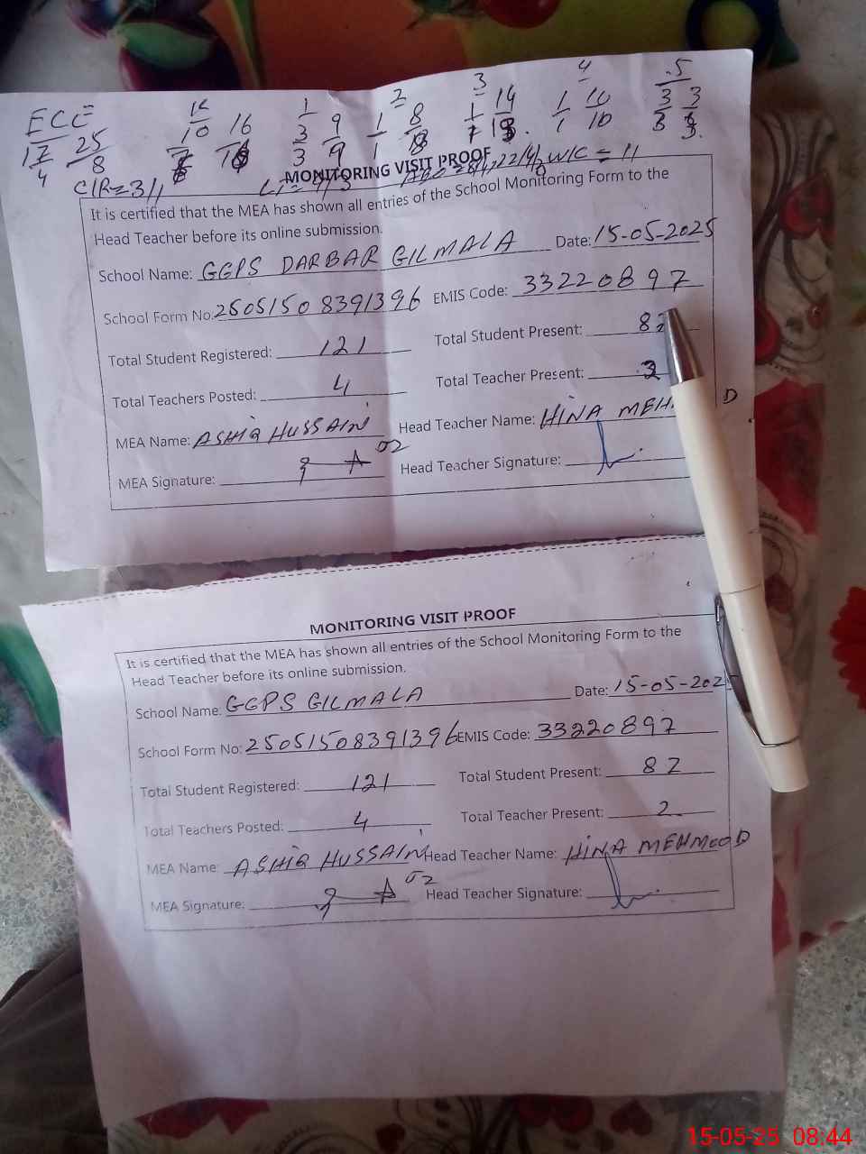 | EMIS Code: 33220897 | Name of School: GGPS DARBAR GILMALA | |||