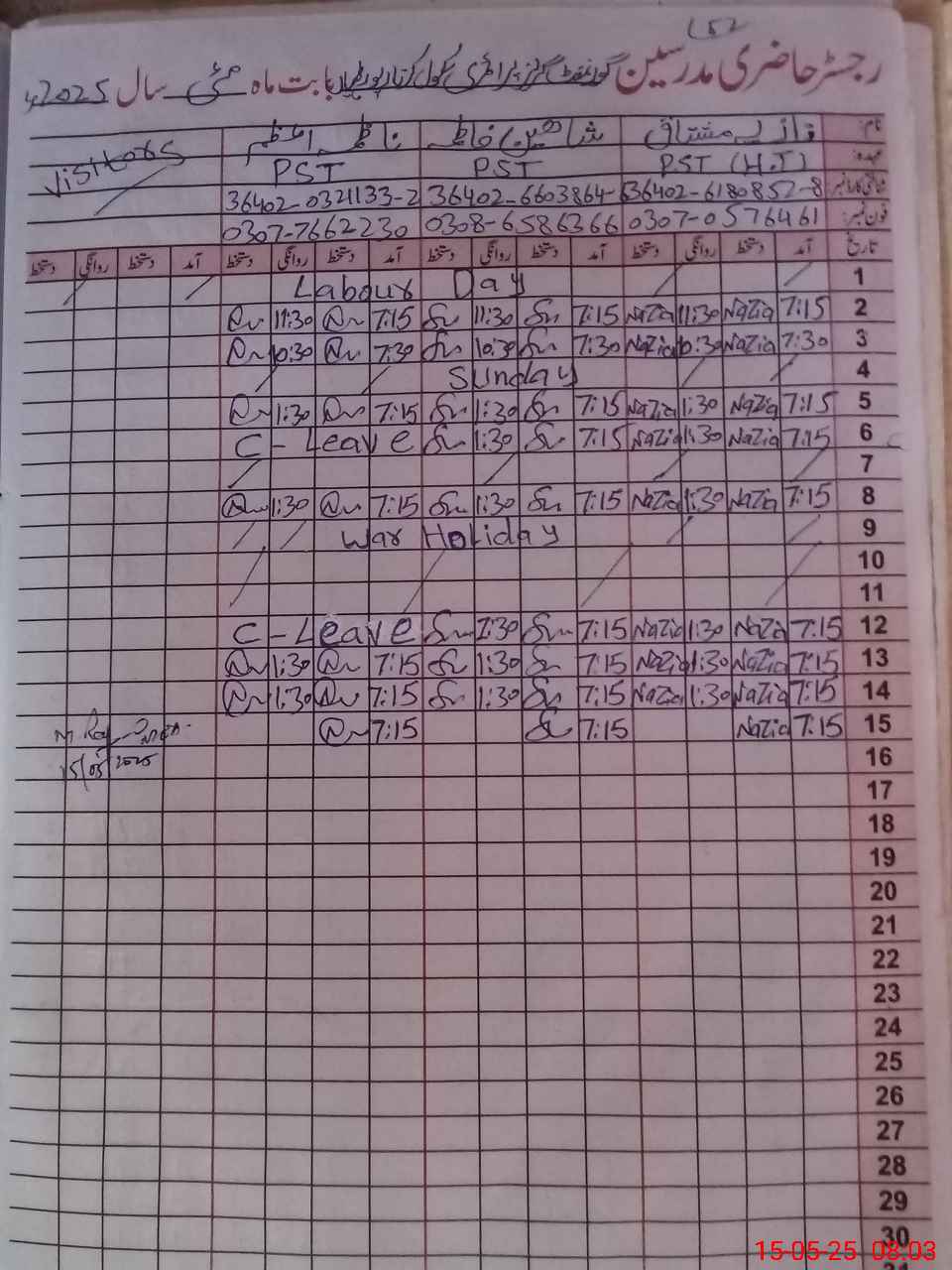 | Name: Na**** Mu**** Designation: (School Headmaster's/Headmistress's) PST Phone/Cell Number: 03**** |