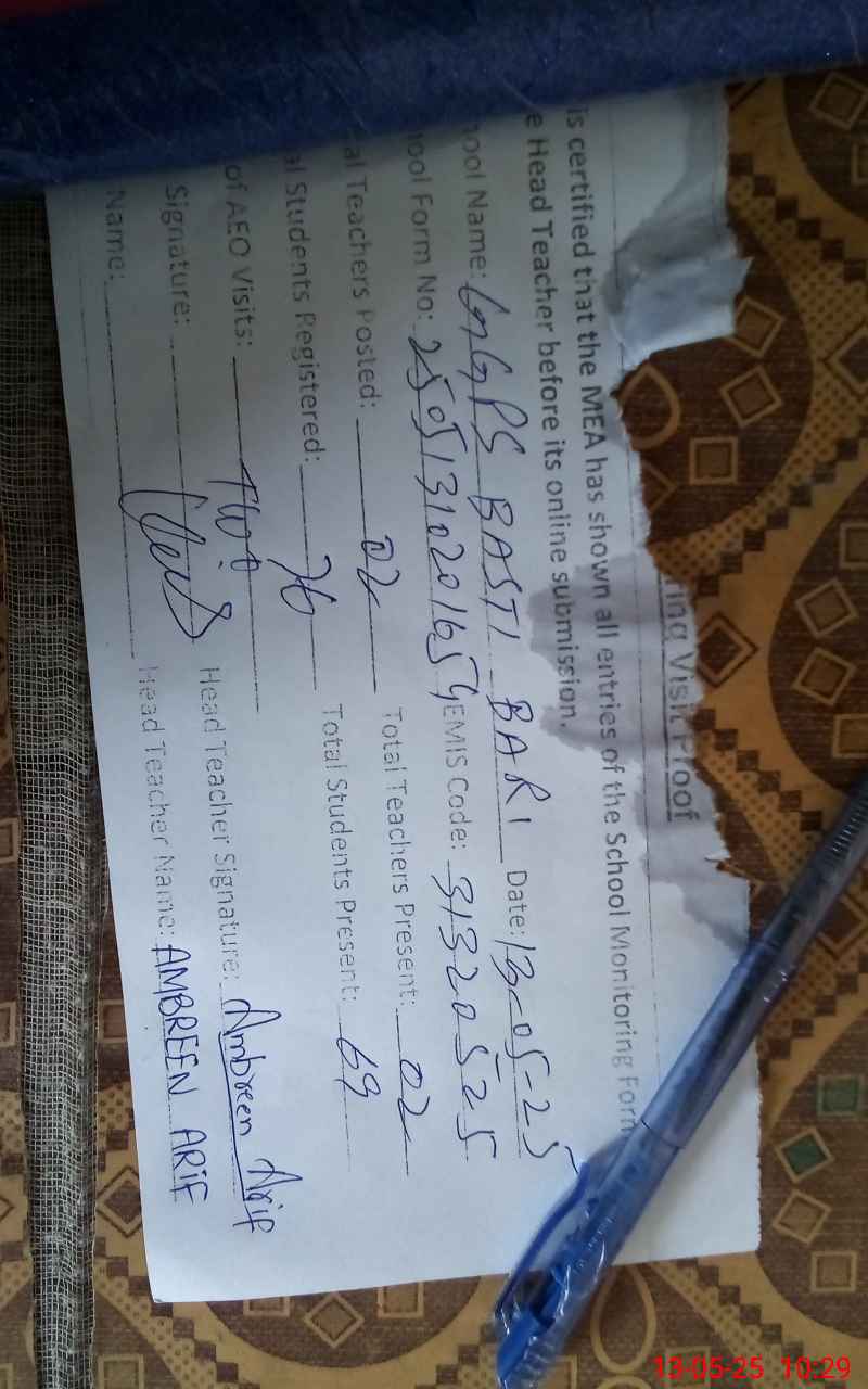 | EMIS Code: 31320525 | Name of School: GGPS BASTI BAARI 4/A | |||
