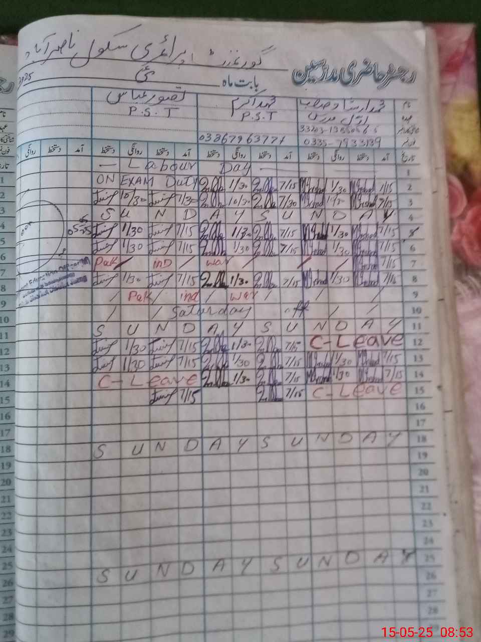 | Name: MIR**** Designation: (School Headmaster's/Headmistress's) PST Phone/Cell Number: 03**** |