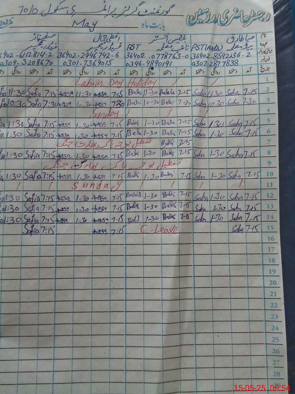 | Name: Ma**** Sh**** Designation: (School Headmaster's/Headmistress's) PST Phone/Cell Number: 03**** |