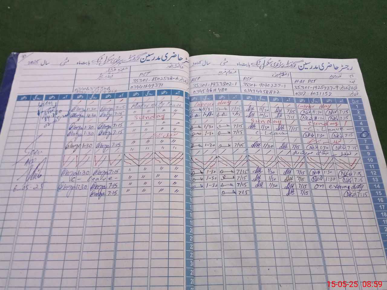 | CNIC | Full Name | Designation | R/C | Absence During Last Calender Month |