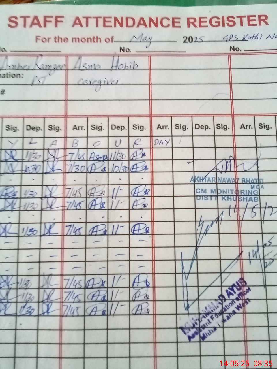 | Monitoring Date: 14-05-2025 | Start Time: 14-05-2025 08:03 AM | End Time: 14-05-2025 08:39 AM | Name of MEA: AK**** NA**** (R**** | |