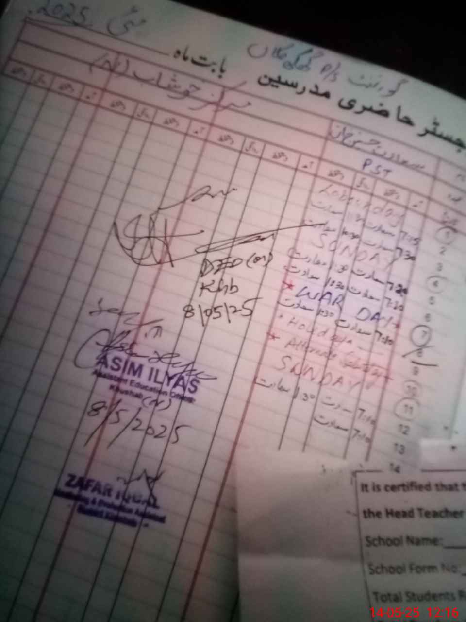 | Certified that this School was Inspected by the Undersigned MEA/DMO Today and the Information Stated Above is as Per Record. | |||||