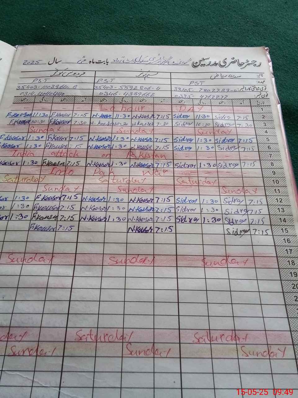 | CNIC | Full Name | Designation | R/C | Absence During Last Calender Month |