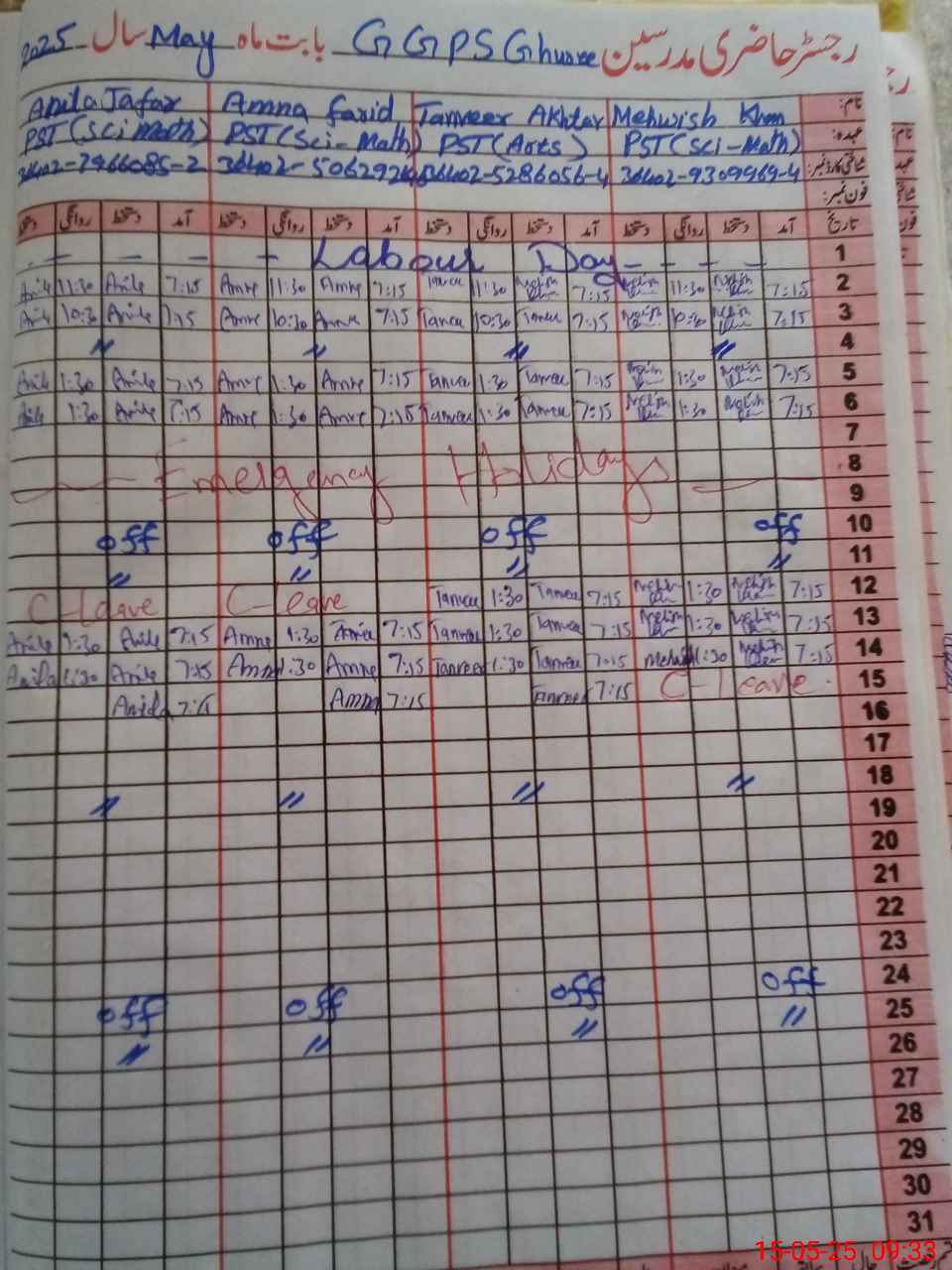 | Leave | Duty | Absent | Maternity | Medical | Ex- Pak |