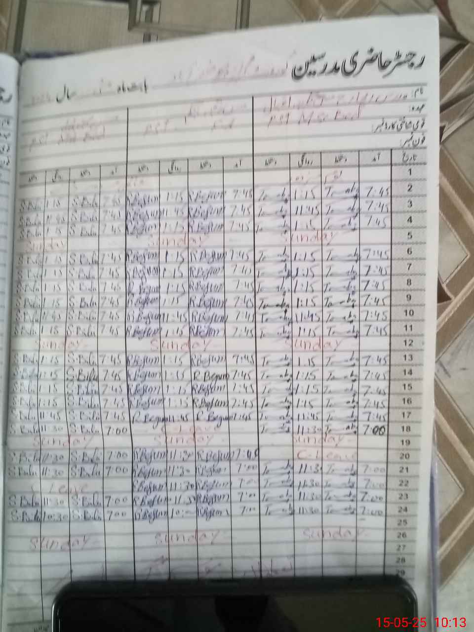 | CNIC | Full Name | Designation | R/C | Absence During Last Calender Month |
