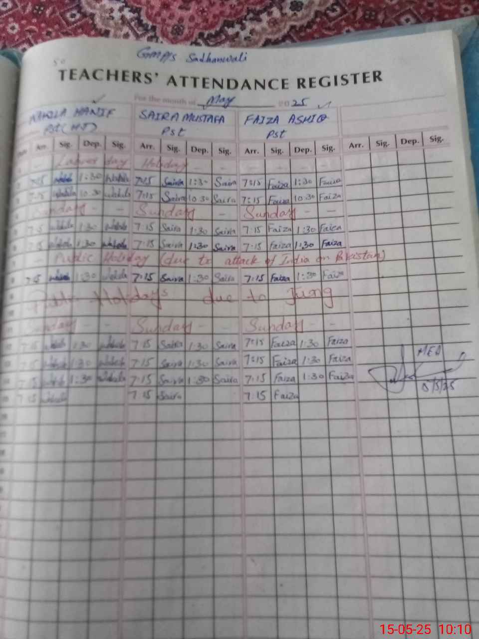 | EMIS Code: 34120427 | Name of School: GMPS SADAN WALI | |||