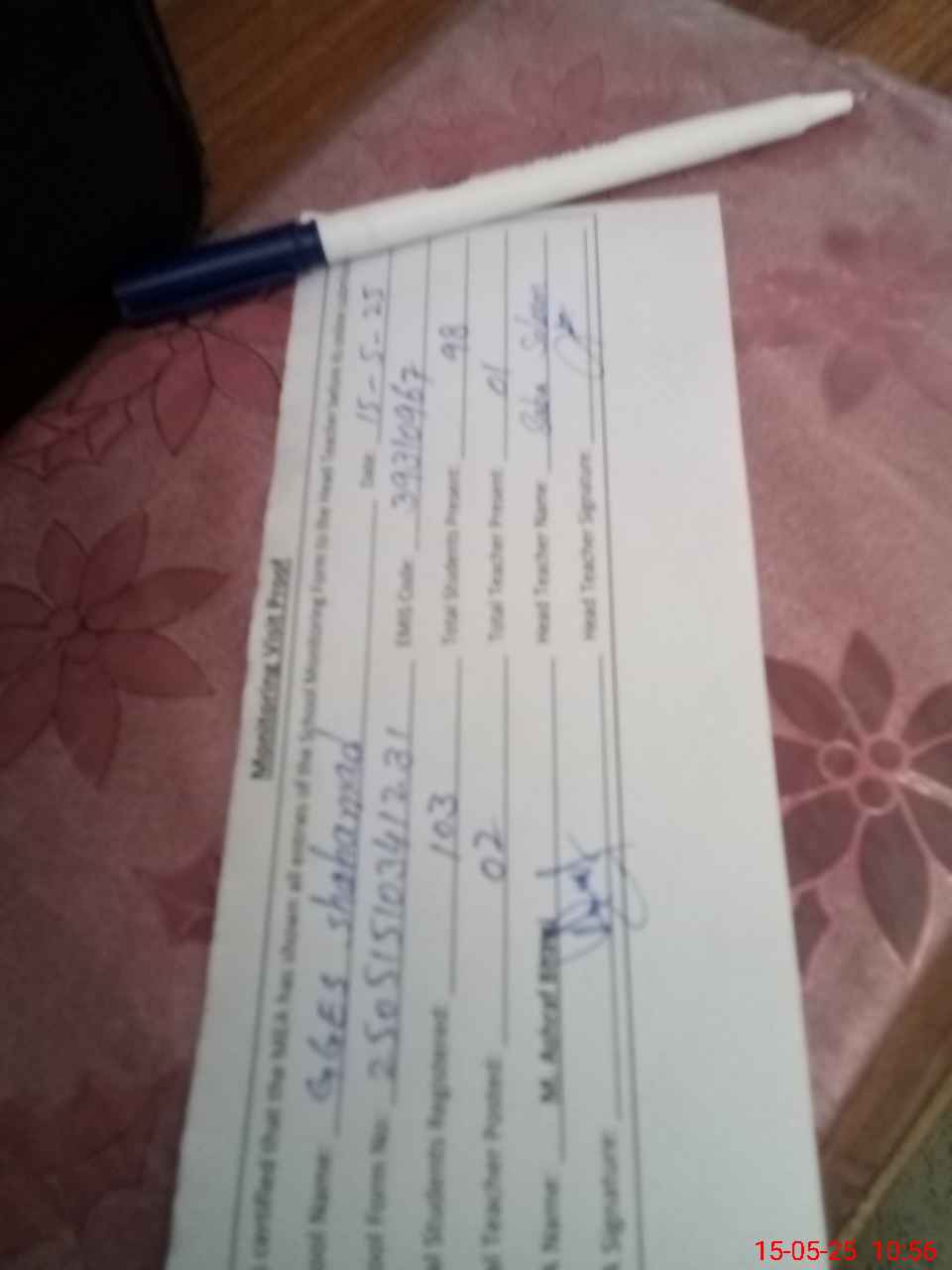 | Attendance Register | Head Teacher | MEA with School | Visit Proof |