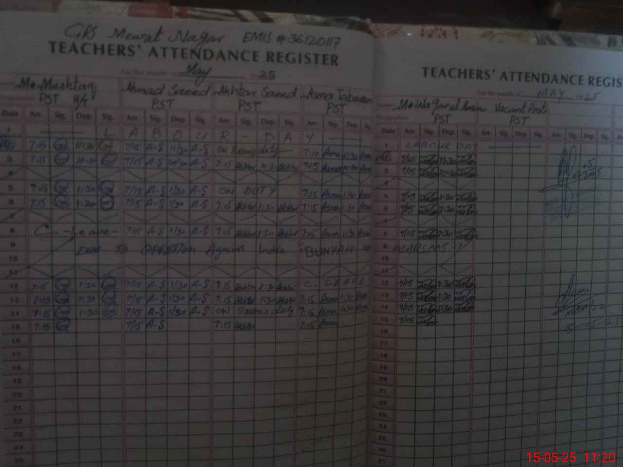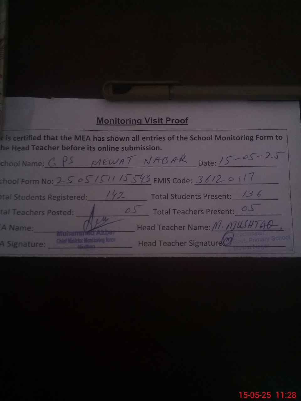 | Attendance Register | Head Teacher | MEA with School | Visit Proof |