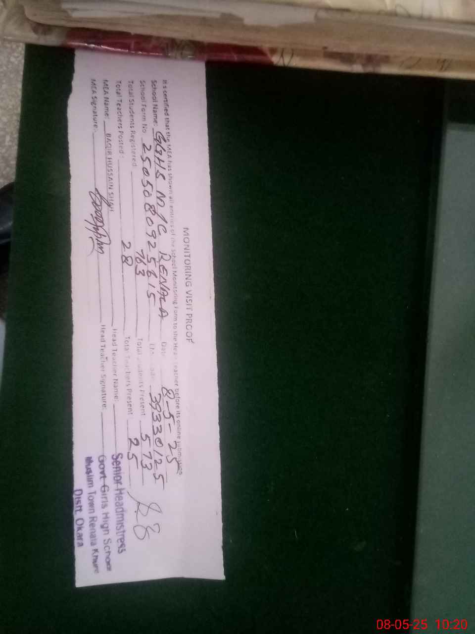 | EMIS Code: 39330120 | Name of School: GGHS MC MUSLIM TOWN RENALA KHURD | |||