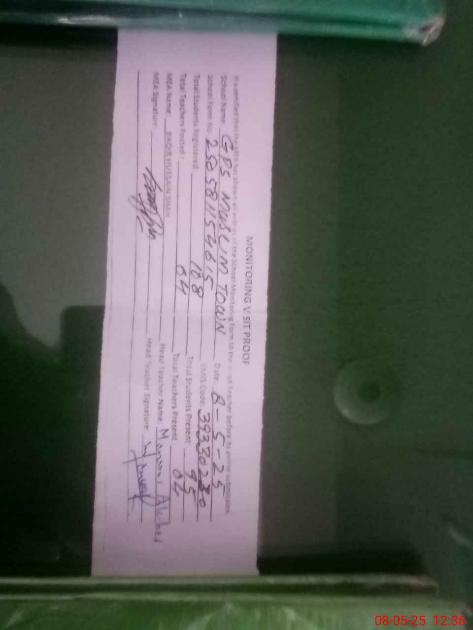 | Attendance Register | Head Teacher | MEA with School | Visit Proof |