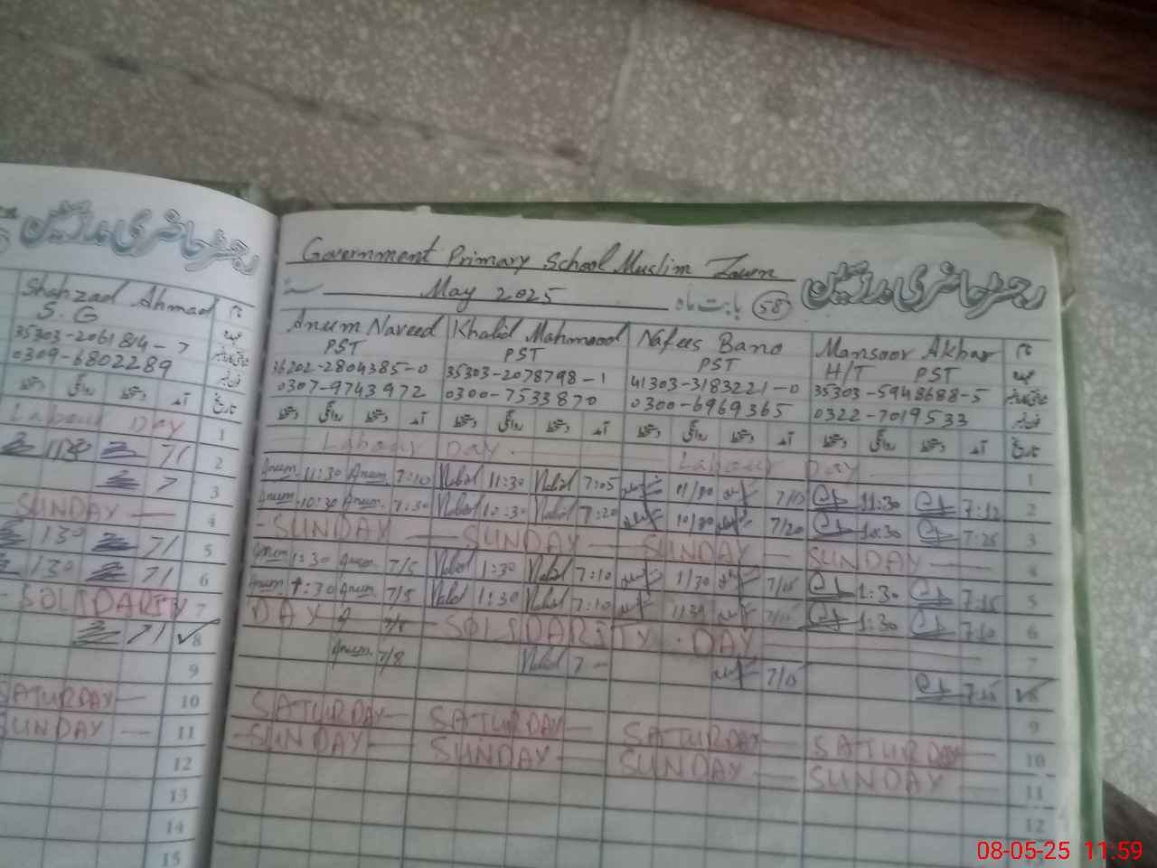 | Name: Ma**** Ak**** Designation: (School Headmaster's/Headmistress's) ESE SCI MATH Phone/Cell Number: 03**** |