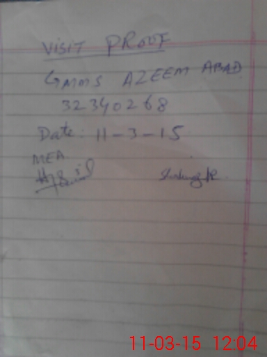 | Monitoring Date: 11-03-2015 | Start Time: 11-03-2015 11:54 AM | End Time: 11-03-2015 12:07 PM | Name of MEA: Gh**** Fa**** | |