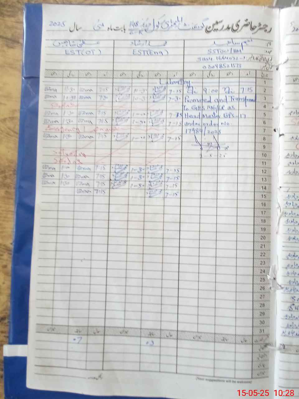 | Name: NA**** SA**** Designation: (School Headmaster's/Headmistress's) SST ( G) Phone/Cell Number: 03**** |