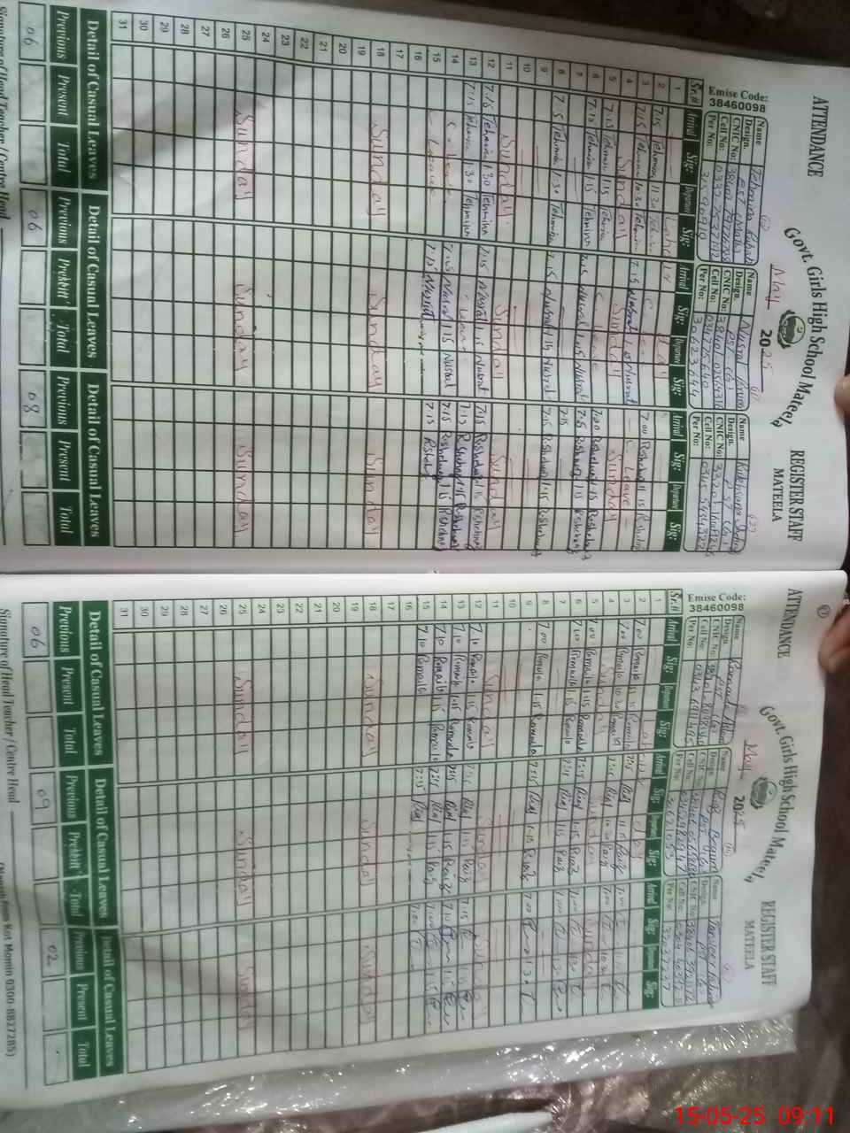 | CNIC | Full Name | Designation | R/C | Absence During Last Calender Month |
