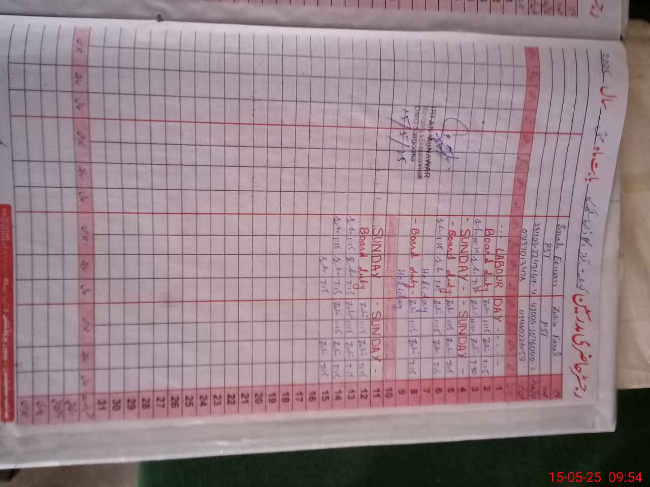 | CNIC | Full Name | Designation | R/C | Absence During Last Calender Month |