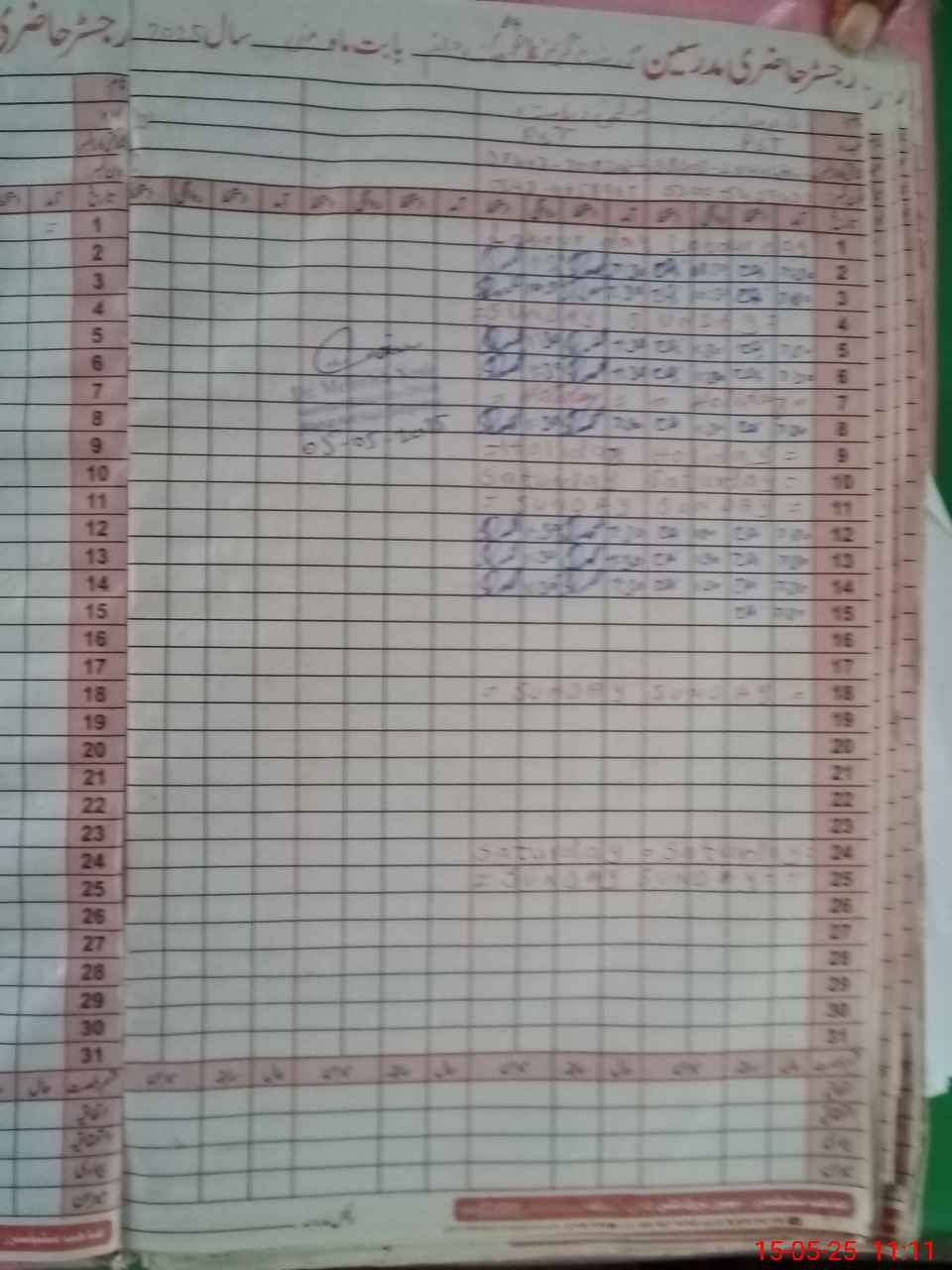 | CNIC | Full Name | Designation | R/C | Absence During Last Calender Month |