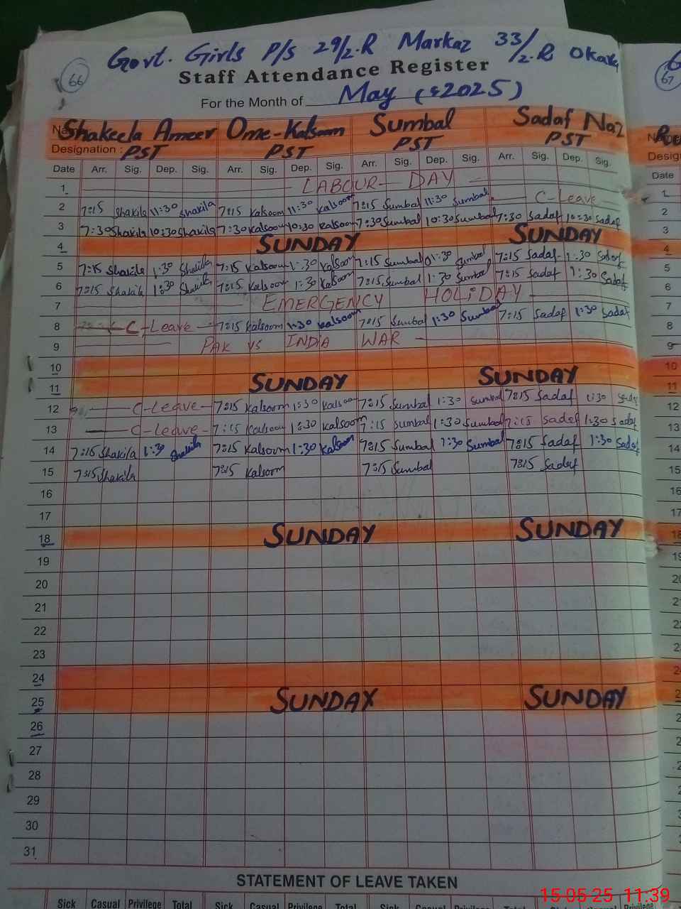| Leave | Duty | Absent | Maternity | Medical | Ex- Pak |