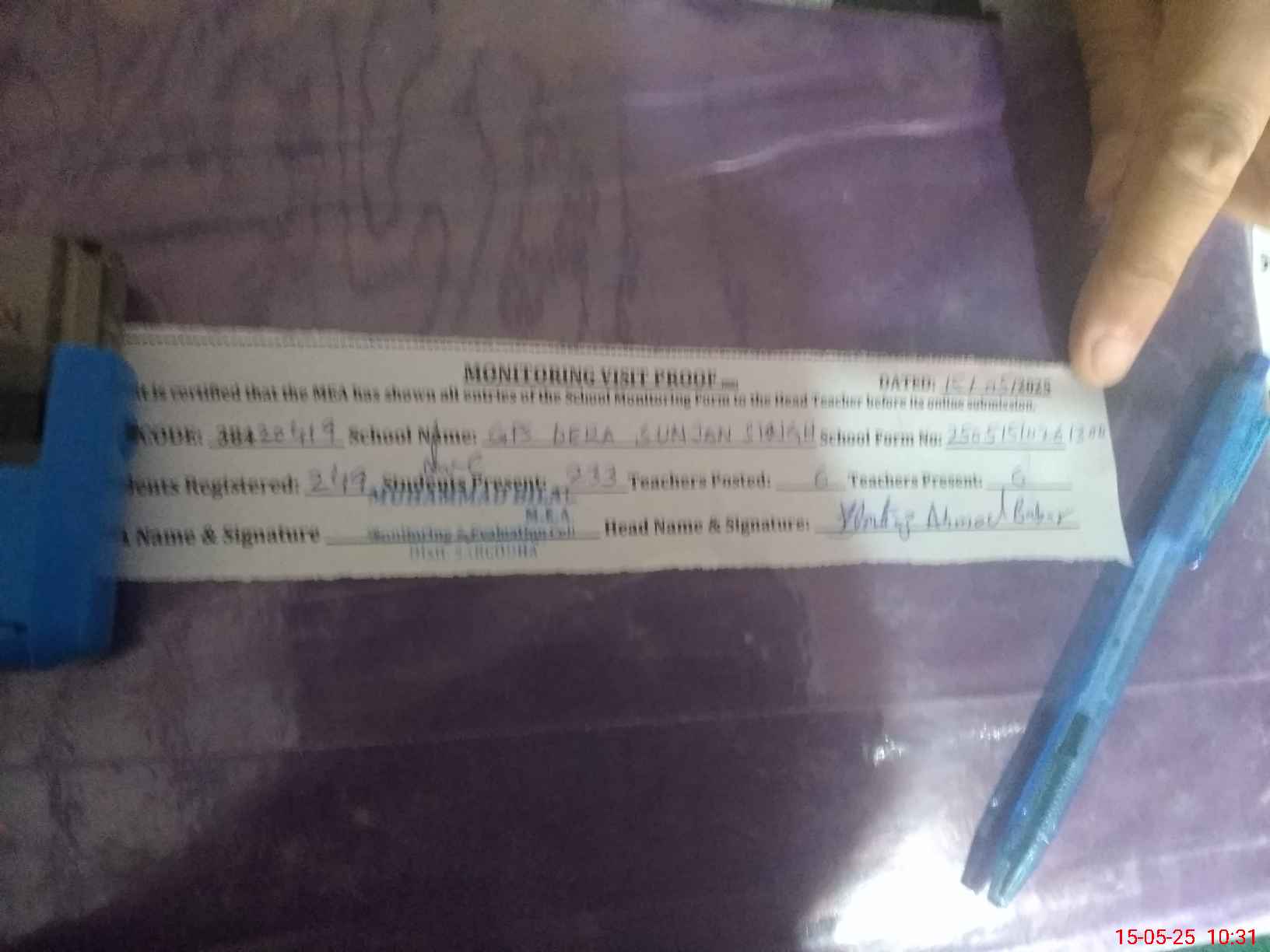 | EMIS Code: 38420419 | Name of School: GPS DERA SUNJAN SINGH | |||