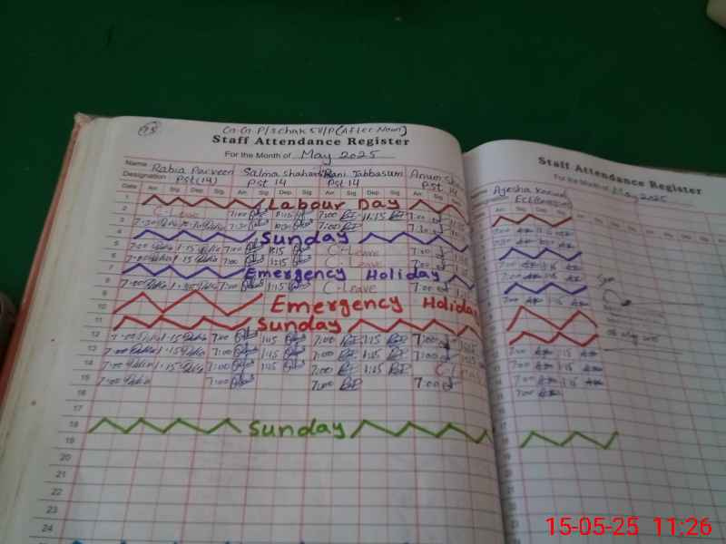 | CNIC | Full Name | Designation | R/C | Absence During Last Calender Month |