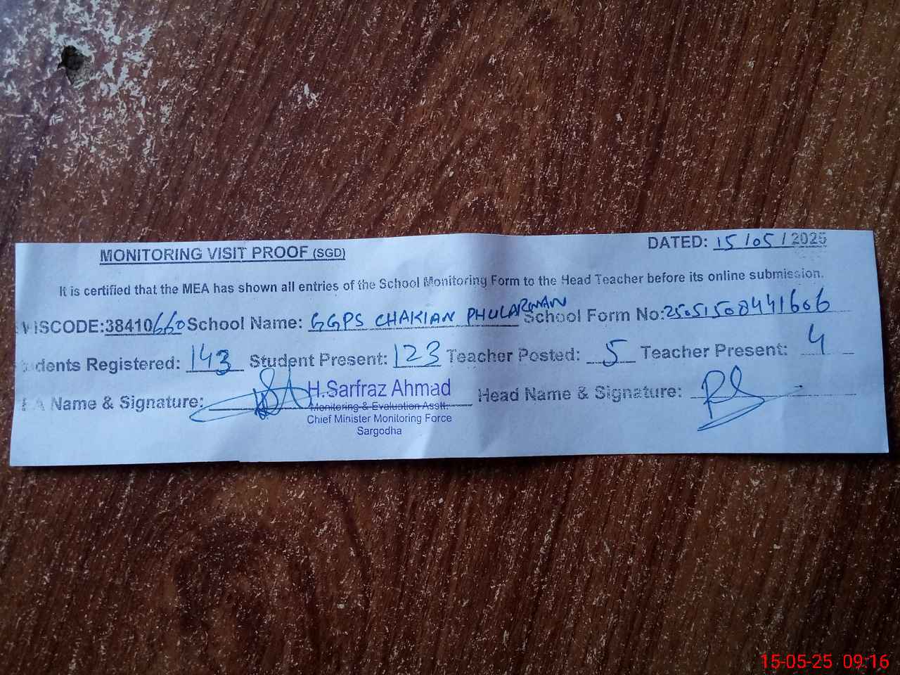 | EMIS Code: 38410660 | Name of School: GGPS CHAKIAN PHULARWAN | |||